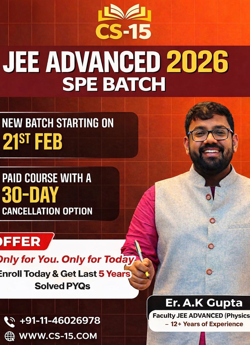 As competition intensifies and JEE attempts are limited, early preparation is key. CS-15 empowers students with the right strategy, tools, and support to secure top ranks in IIT-JEE and other competitive exams.